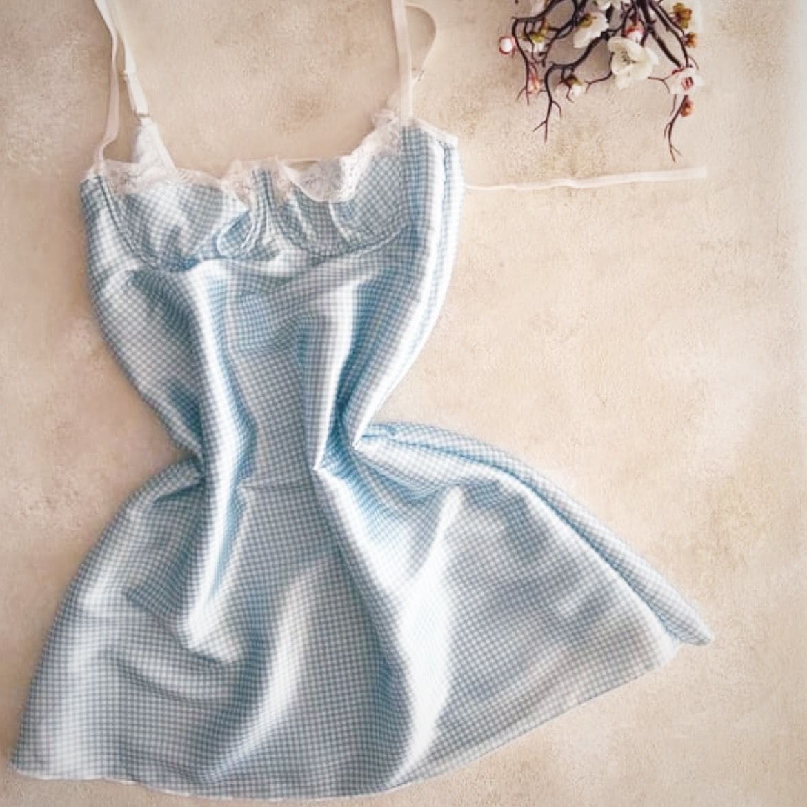 Göğüs dantel detaylı, balenli yapısıyla destekleyici, pötikare desenleriyle göz alıcı bir şıklık sunan bu saten geceliği, kendinizi özel ve zarif hissetmek istediğiniz her an tercih edebilirsiniz.